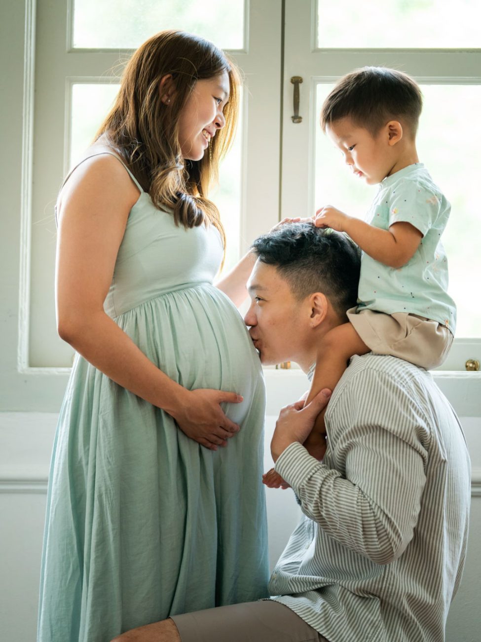 Including your partner or older children creates heartfelt, meaningful maternity photographs that tell a fuller story with the presence of family.